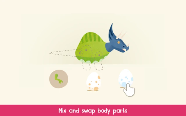 Create your own dinosaur! Mix and swap body parts then see it come to life. Explore the world, let out a roar and find eggs to change your dinosaur's appearance.